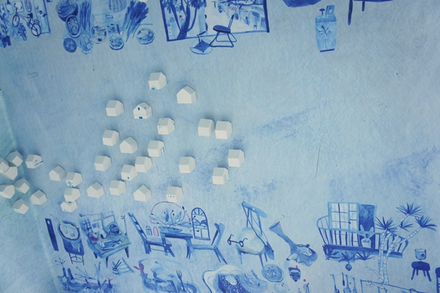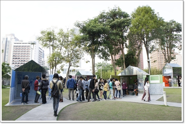 走入室外勤美術館整片綠草地擺設好多銀色小房屋,參觀人潮也是很多
