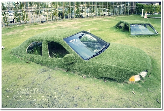 巴布融看到車子在草坪中大聲說:奇怪~車子怎麼會從地上長出來勒?