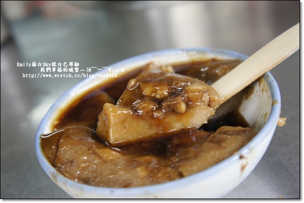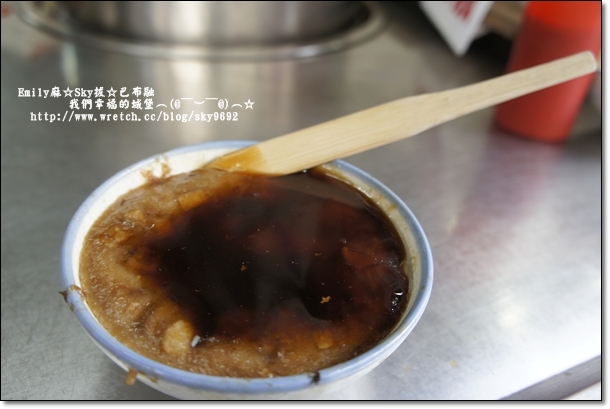 一碗黑嘛嘛的古早味碗粿,淋上自家獨特醬汁