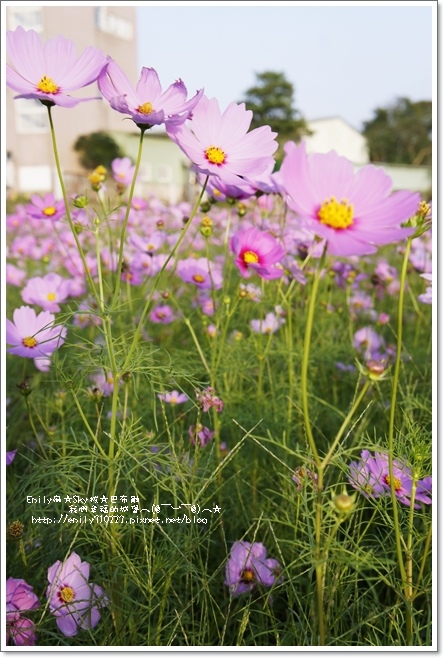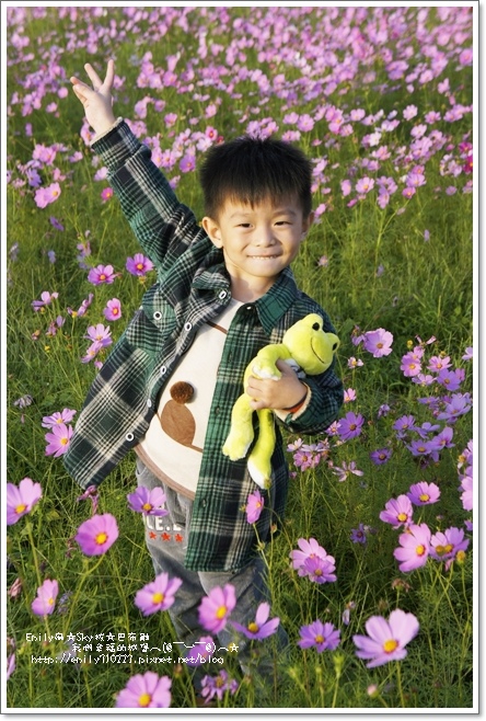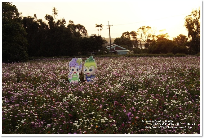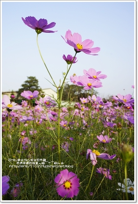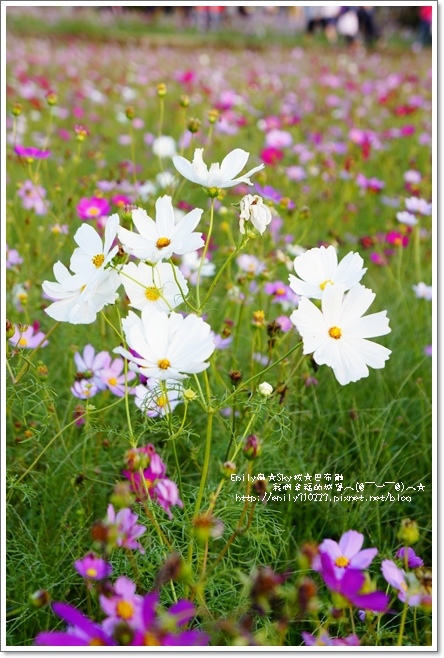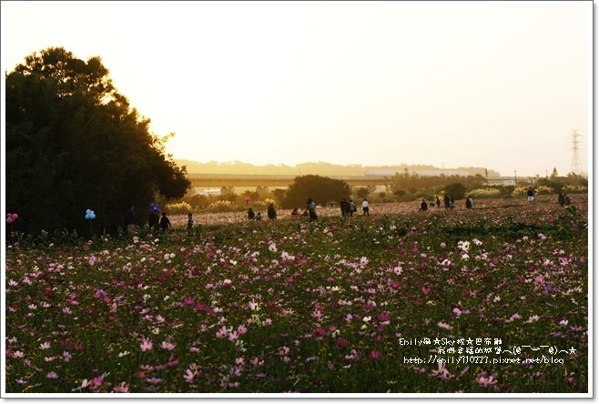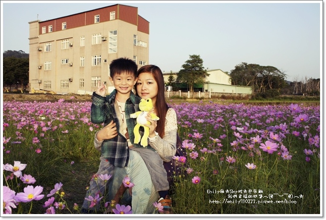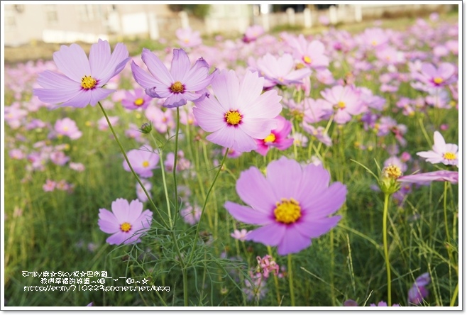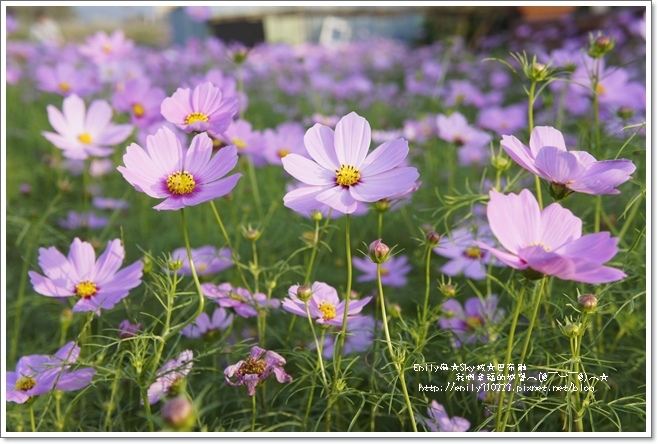 Emily超愛粉色系列顏色,看到這整片密集粉紅色波斯菊花田中