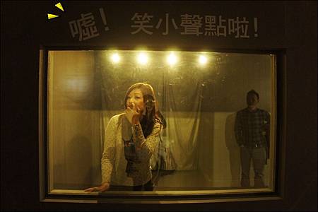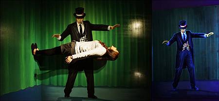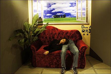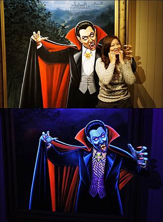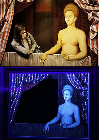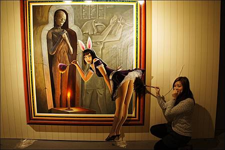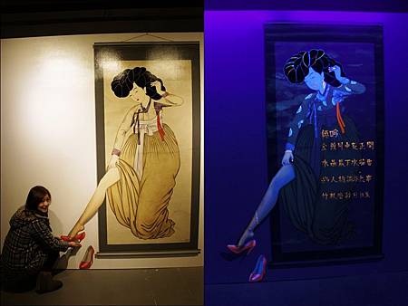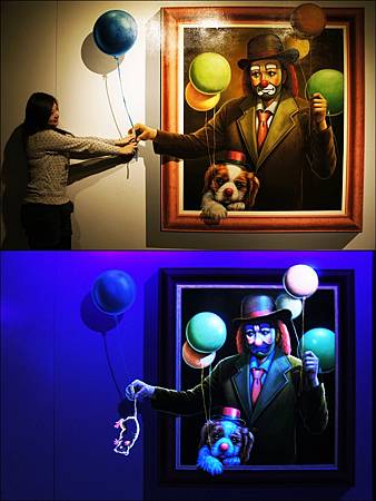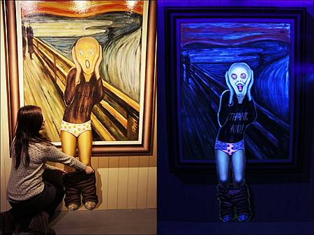 一走進展場內,燈光明亮著讓大家開始在畫前擺出經典動作,突然"喀一聲"展場燈滅掉