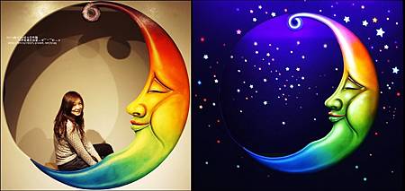 哇~夜光時展示出五彩繽紛星星陪伴著月亮