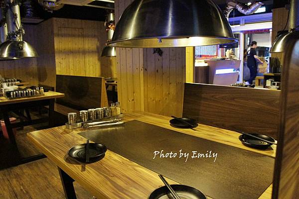 每坐位上方獨立照明與排煙設備,讓客人在這裡享用燒肉時,