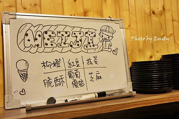 冰淇淋各種口味6種,店家手畫Q版冰淇淋口味白板~好古錐唷!!