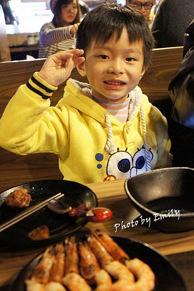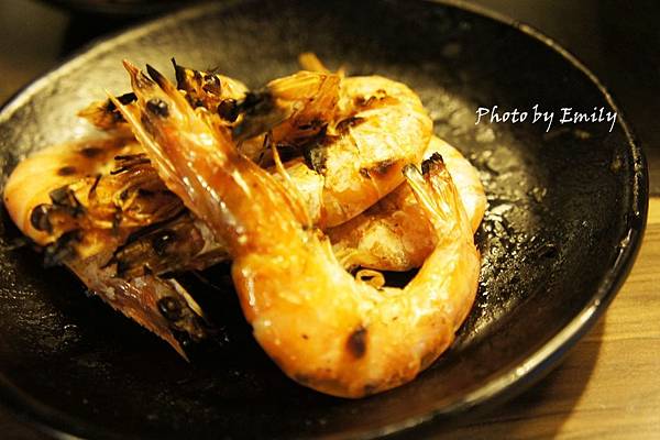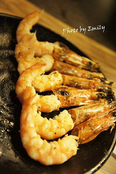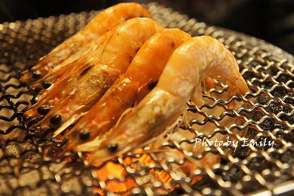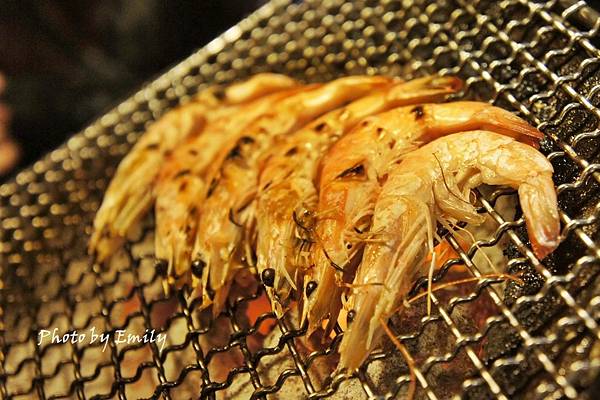 正反面都烤紅後,Emily還會掰開蝦子底部也要微烤