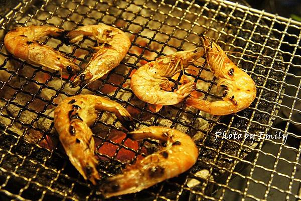 放在烤網中,一個個乖乖的排隊躺下新鮮的白蝦,烤個一會兒即開始漸漸變色了