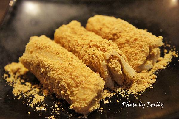 包裹花生粉在裡頭,在摺疊長方型狀擺盤