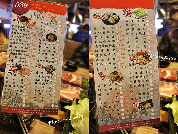 服務人員遞上$539菜單,也詢問是否有些肉品不吃的,