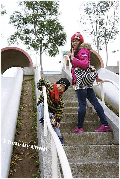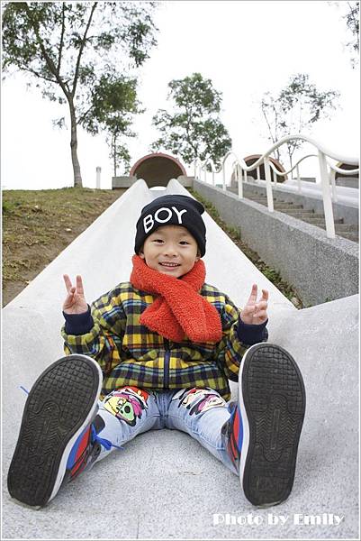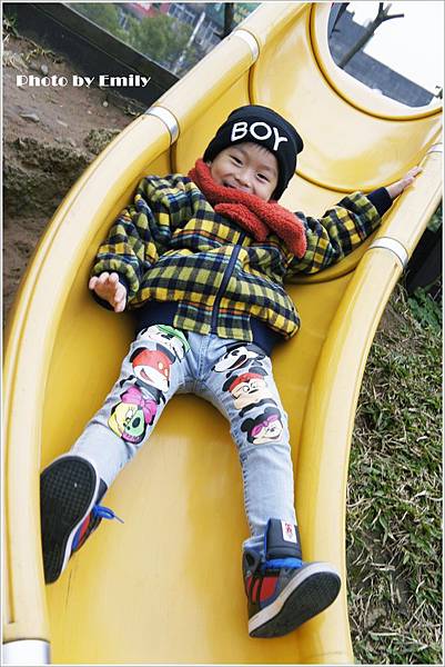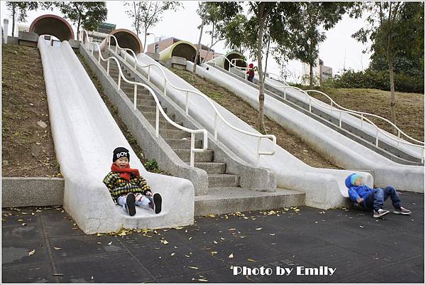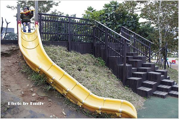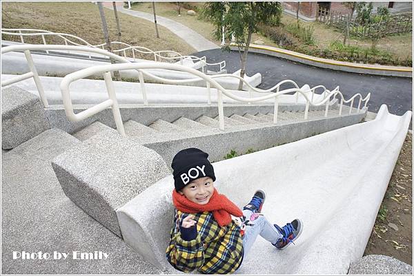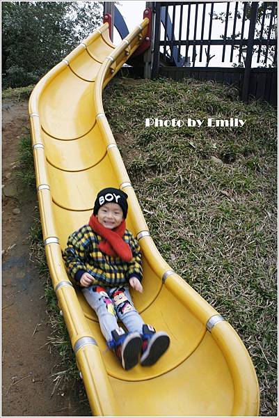 Emily被巴布融硬拉上來,也要我感受一下這爽快速度溜滑梯