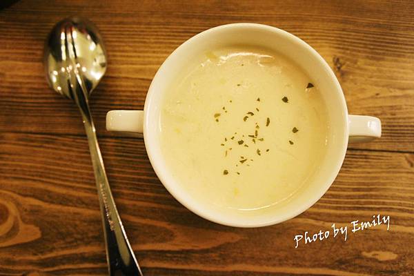 此店餐點提供套餐式,主餐、湯、飲料(紅茶、咖啡、綠茶)