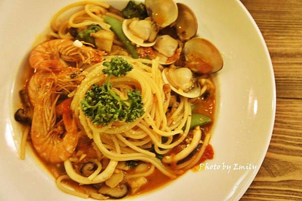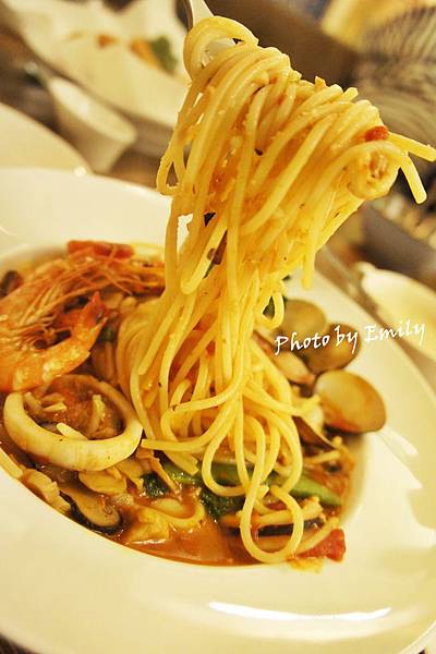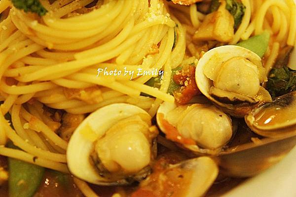 滿滿的海鮮精華流入茄汁裡,自然回甘的鮮甜,尤其是義大利麵條更是滑嫩Q