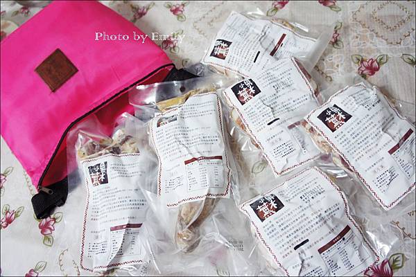 打開創意環保保溫禮袋,裡頭放置一包一包果木薰雞真空包