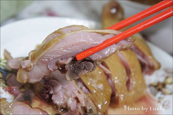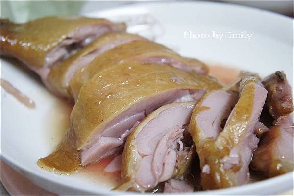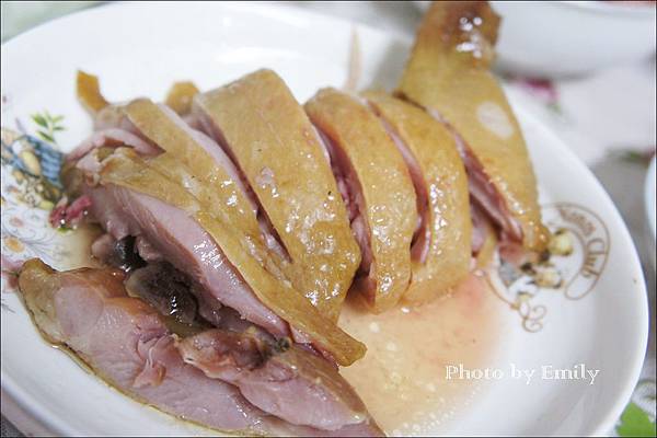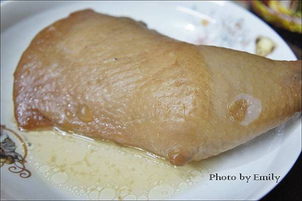 Emily剁一塊一塊盛盤,油油亮亮閃閃誘人的果木薰雞腿