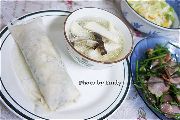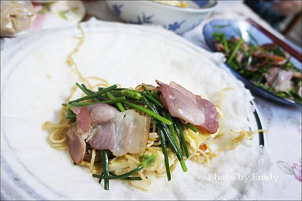 Emily創意一下,將潤餅加入大量的蒜苗餡料,