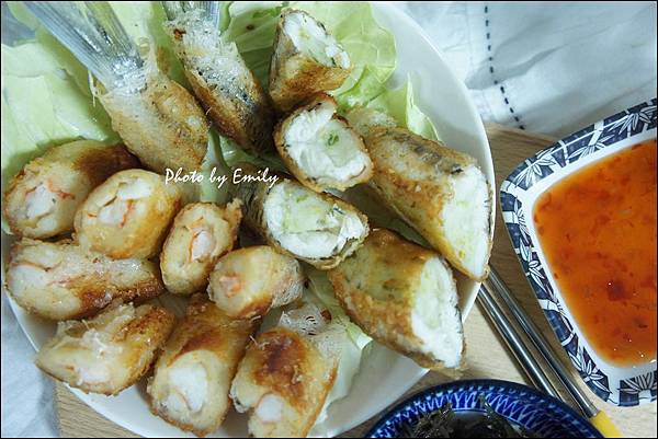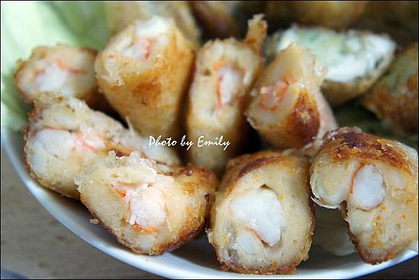虎蝦蟹花捲完整的一整隻虎蝦在裡頭