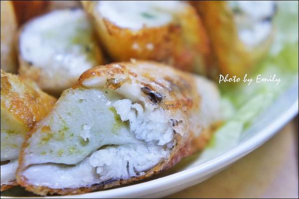 裡頭一層海菜花枝漿加少許檸檬皮