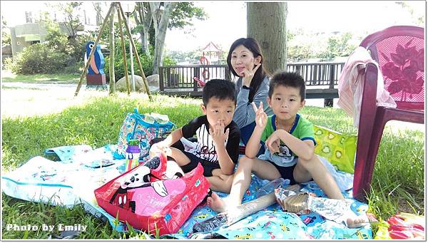 周邊環境有大樹遮蔭,完全不會被曬到太陽,小小區塊草原攤開野餐墊