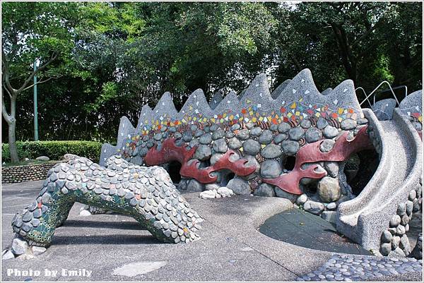 龍頭下方有一穿越的函洞,可以讓小朋友穿越的玩樂