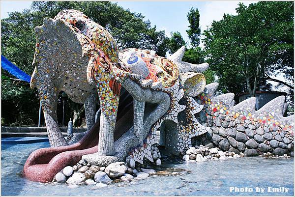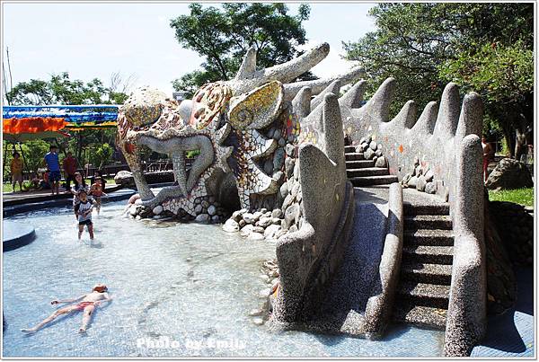 戲水區裡最大的特色就是龍頭造型的溜滑梯