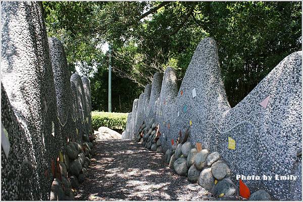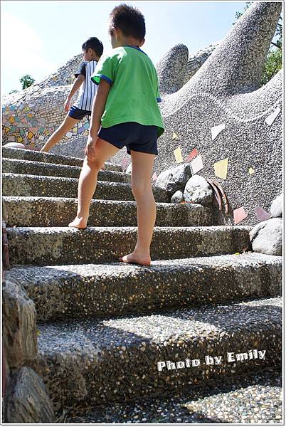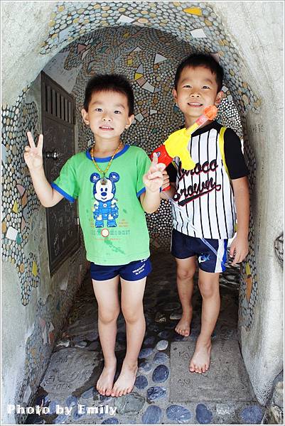 地面鋪有鋪上天然小石頭、馬賽克磁止滑,很適合小朋友玩水喔!