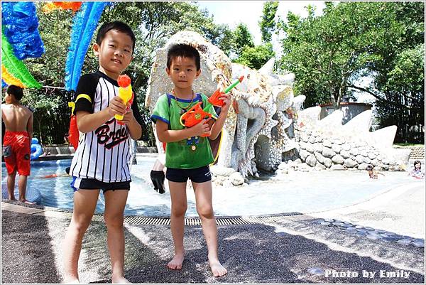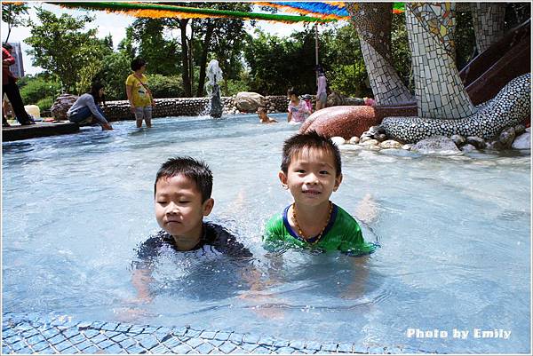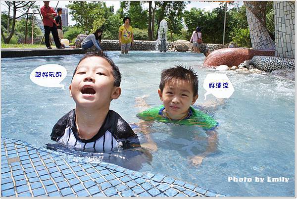 爸比媽咪們可以坐在旁邊看著寶貝們戲水,連Emily都想下水清涼一