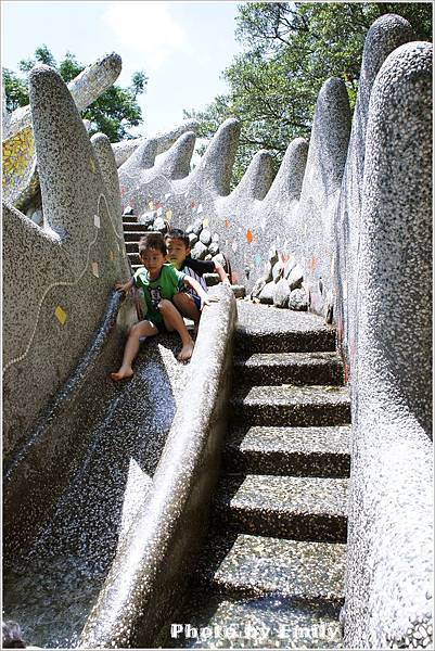 除了龍頭造型溜滑梯戲水池外,旁邊還有龍身體延伸的溜滑梯!