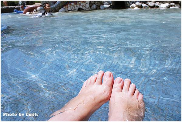 延著池邊設有階梯平台,大小朋友可以坐在這兒泡泡腳戲水,清涼一下!