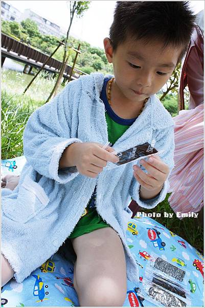 哈哈哈~巴布融玩到餓了,不停的在吃餅干及海苔