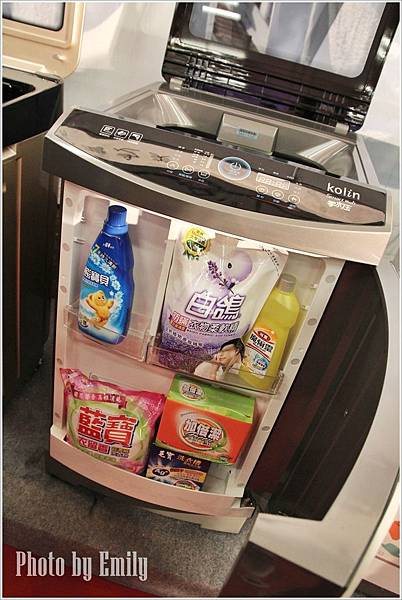 將打開前面板蓋子,裏頭可以放一些洗衣精/洗衣粉等