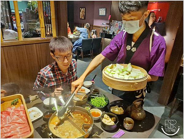 服務生會拿一大盆蔬菜,詢問客人是否要加入蔬菜