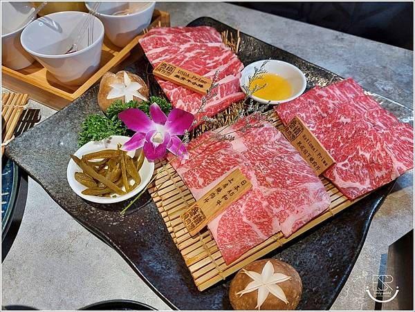 肉品有日本5A和牛上肩燒肉片、安格斯黑牛肋條、